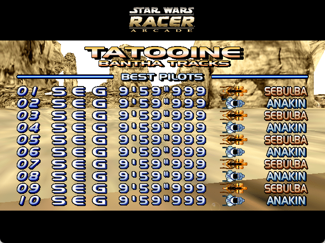 If you haven't played Star Wars: Racer Arcade or want to try this racing / driving video game, download it now for free! Published in 2000 by SEGA Enterprises Ltd., SEGA of America, Inc., Star Wars: Racer Arcade was an above-average vehicle simulator title in its time.