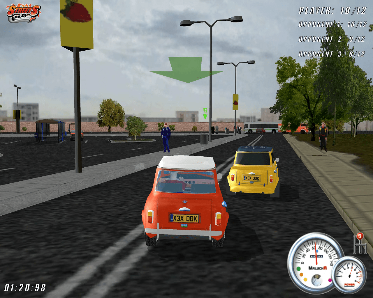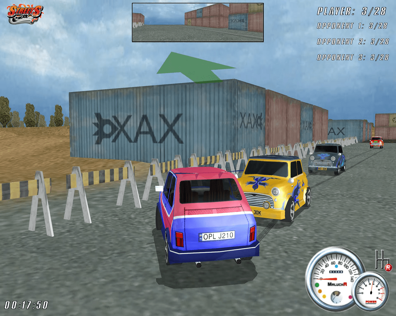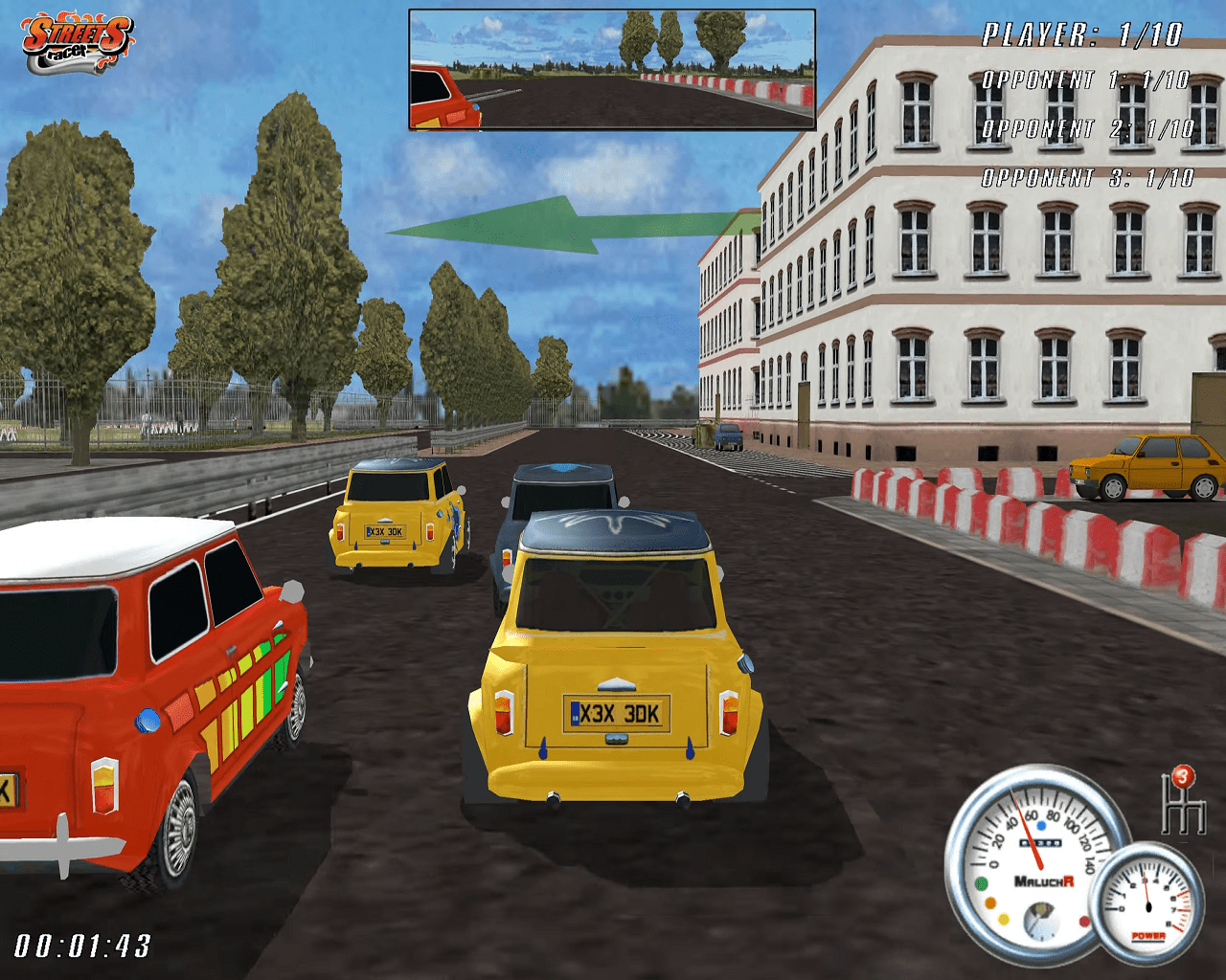 Streets Racer was an updated variant of Maluch Racer that had 3 new vehicles (Mini Coopers in different colors) and new tracks. For unknown reason, this variant never had a Polish version, the game released in Poland with English language