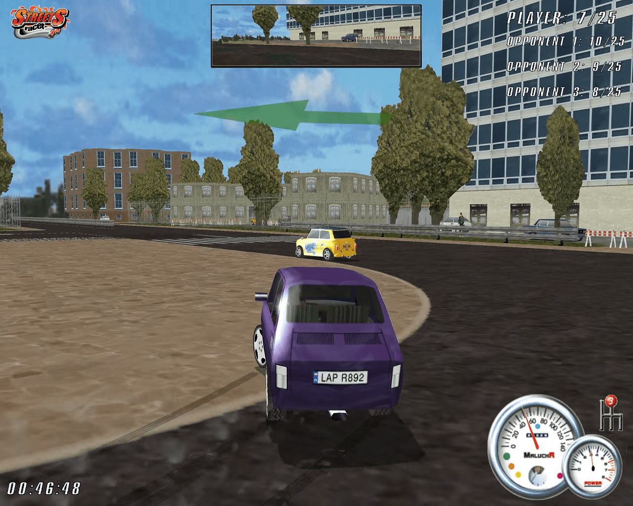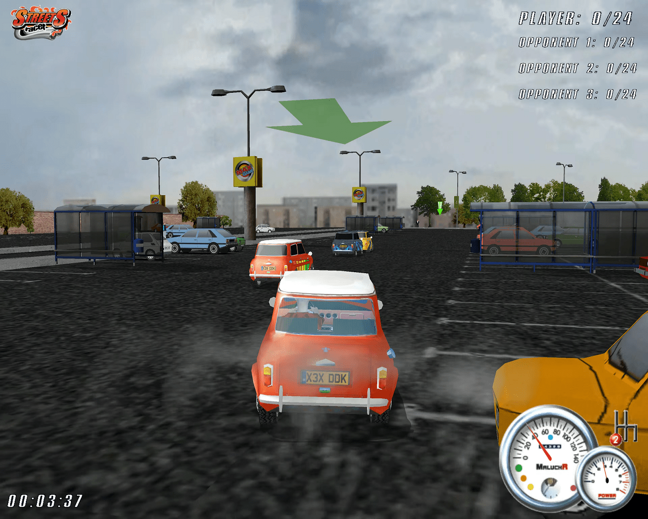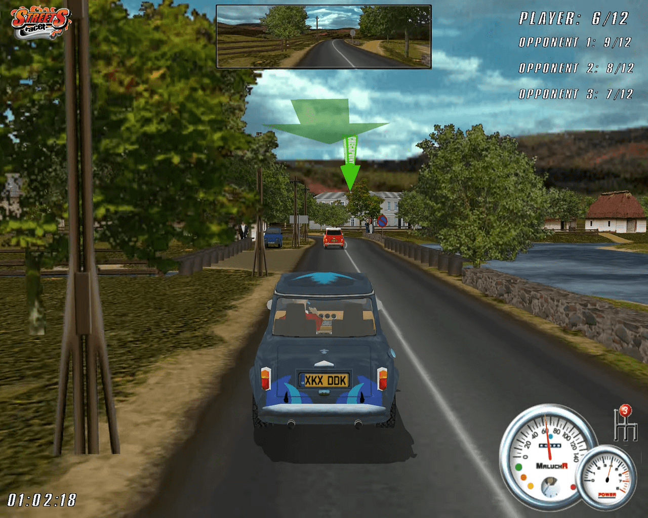 Streets Racer was an updated variant of Maluch Racer that had 3 new vehicles (Mini Coopers in different colors) and new tracks. For unknown reason, this variant never had a Polish version, the game released in Poland with English language