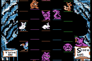 Here is the video game “Super Bunny”! Released in 1983 on Commodore 64, it's still available and playable with some tinkering. It's an action game, set in a platform theme and it was released on Apple II and Atari 8-bit as well.