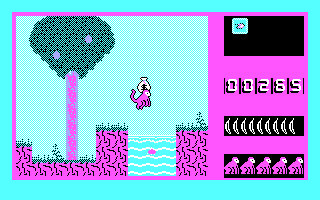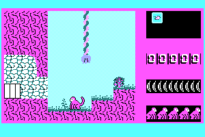 Arrow keys (up, down, left, right) to move. Down to open doors. Space to shoot (spit acid balls?). Numpad 5 to shoot straight up. F1 for help.