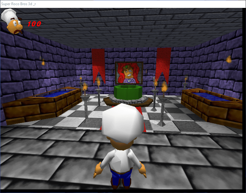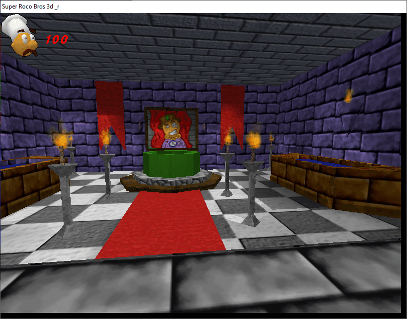 Here is the video game “Super Roco Bros. 3D”! Released in 2002 on Windows, it's still available and playable with some tinkering. It's an action game, set in an arcade, platform and fangame themes.
