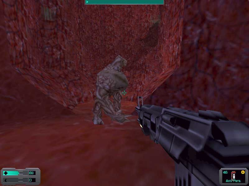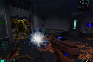In the time of System Shock 2, around forty years have passed after events in the first game. After the close call of super-computer-gone-crazy SHODAN, the governments have banded together under the United National Nominate (UNN) to oppose megacorporation Tri-Optimum and other large companies. An uneasy peace now exists. When the game starts, you are at a UNN base. You go through some training missions, and the tutorial is very easy to learn and controls quick to figure out. The interface of SS2 makes controling your character easy: one hand on the keyboard to move your guy and the other on a mouse to look around and pick things up will serve most people well. Joysticks are supported, and it is suggested that you learn some of the hotkeys in the game to save yourself time and effort.