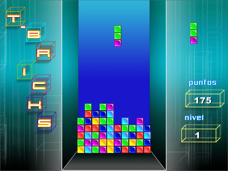 T-Bricks is a video game published in 2003 on Windows by Ediciones Cátaro, S.L., Revista Genios. It's an action and puzzle game, set in a falling block puzzle and tile matching puzzle themes.
