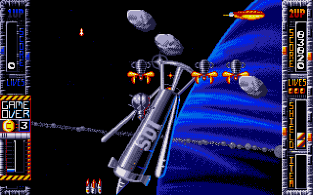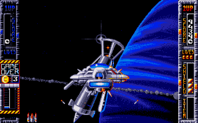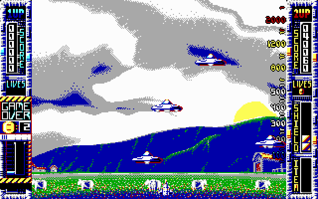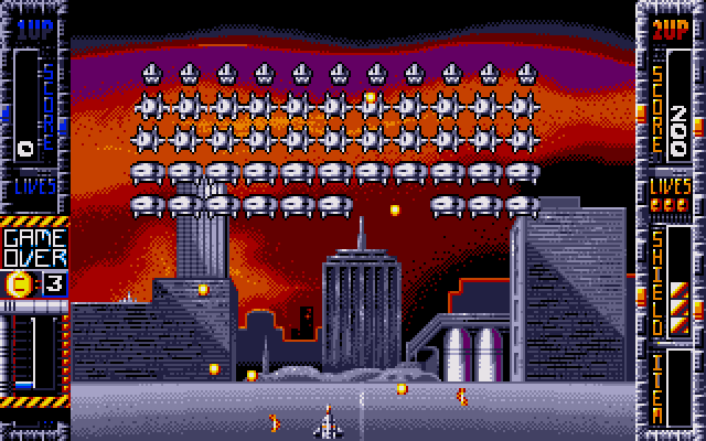 PC conversion of Taito's 1990 arcade game Super Space Invaders '91. As you would expect, it's the classic shoot'em up you all know, updated with lots of different extra weapons, various background graphics, a co-operative two-player mode and a fun bonus level called "Cattle Mutilation".