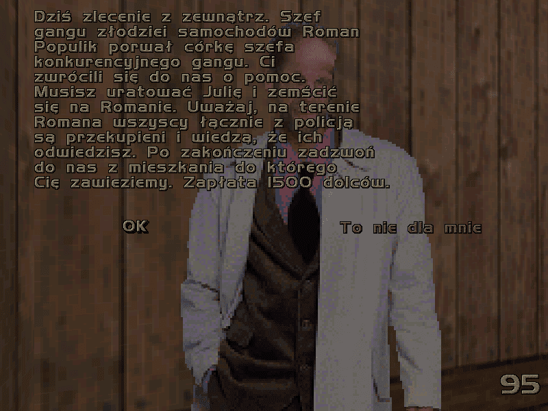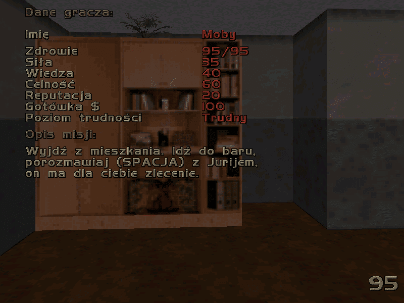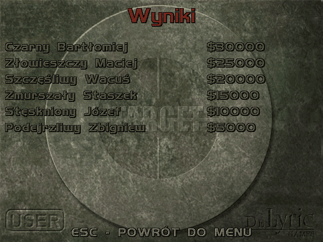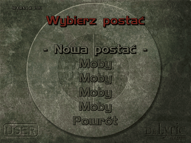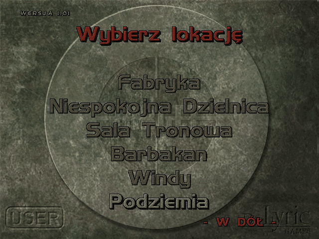 - If you don't know how to start the game: in Singleplayer menu select "Jeden gracz", then "Nowa postac"; several unintelligible items will appear, in one of them you must enter a nickname. After those crazy choices, we wake up at home. To begin the first mission, go to the city bar, then talk to a white guy using the "use" button. Press enter on the first option that appears, and finally, leave the bar to enter the world of Target. To change the game options: press Esc, then "Opje", then "Esterowanie", and you'll see two options: "Klawiatura", which is the keyboard, and "Misz", which is the mouse. Use the numbers to choose the different weapons. Pressing Z throws grenades, and pressing Insert throws the weapon