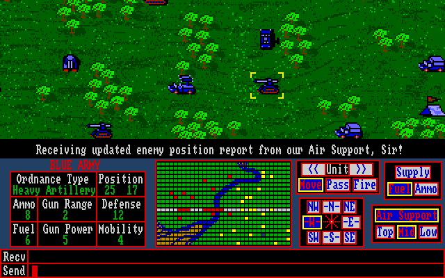 Here is the video game “TeleWar”! Released in 1987 on Amiga, it's still available and playable with some tinkering. It's a strategy game, set in a tank and turn-based themes.