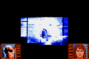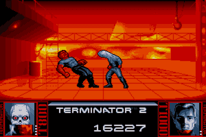 The first beat-'em-up section -- a battle between the old and the new Terminator in a corridor-- is downright abysmal. Instead of feeling like the powerful battle that it should, you just poke or fire weapon leisurely at your opponent, causing damage little by little before he falls. The enemy Terminator advances ever-so-slowly towards you with a tinny growl that sounds more like a broken PC speaker than a menacing killer android, making no effort whatsoever to evade your fire.