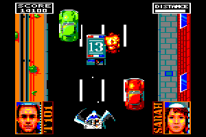 After the slow-motion, beat'-em-up "action" of the first level, this game improves slightly with a racing section. You race a moped and see the level from the top-down perspective, trying to outrun the Terminator's truck and avoid obstacles. Unfortunately, after this high point of the game, it goes back to mediocrity again with tediously moving pieces of an ostentacious "puzzle" section.