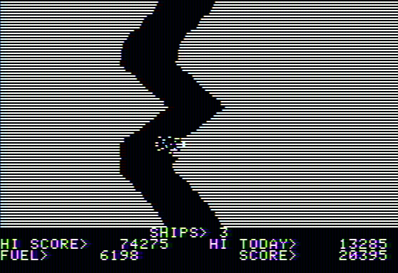 Here is the video game “Tharolian Tunnels”! Released in 1982 on Apple II, it's still available and playable with some tinkering. It's an action game, set in an arcade, shooter and space flight themes.