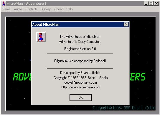 Microman was created by Brian L. Goble and started as a graphical demo of the library called WAP developed by him, which he was trying to sell to game developers. This library aimed to establish a standard for game creation (similar to what DirectX did in the following years). However, the demo became more popular than the animation library itself, prompting Goble to turn that demo into a Shareware title (The Adventures of Microman) in 1995, becoming one of the best puzzle/action titles for Windows 3.1. The game was notable for incorporating high-quality digitized audio and smooth animations.