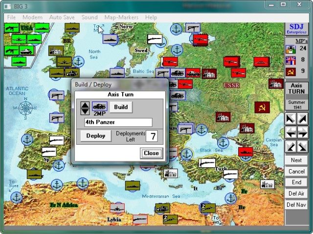 Here is the video game “The Big Three”! Released in 1995 on Windows 3.x, it's still available and playable with some tinkering. It's a strategy game, set in a historical battle (specific/exact), turn-based and world war ii themes.