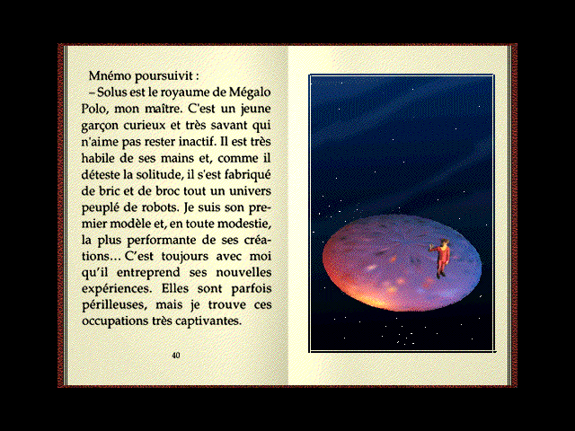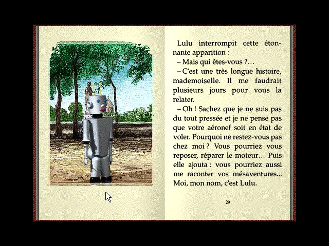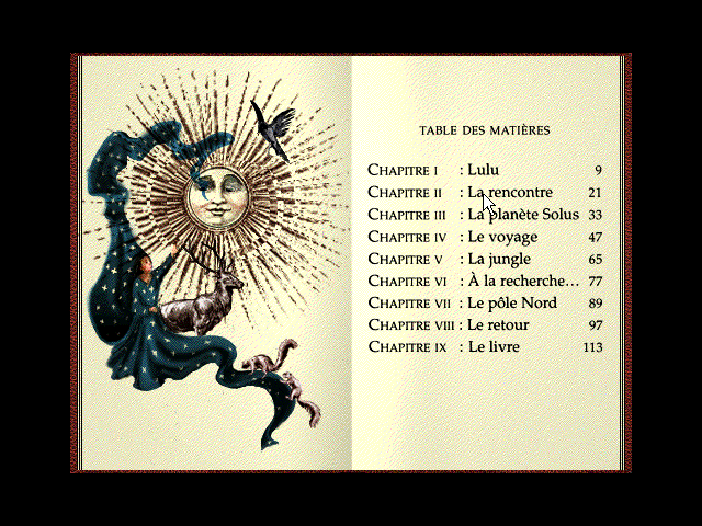 One of the greatest CD-ROMs ever made, The Book of Lulu is a wonderful children’s tale that will move you in the same way as Le Petit Prince (a.k.a. The Little Prince) and Winnie the Pooh do. It’s one of the rare “children’s story but not only for children” that sold hundreds of thousands of copies in Europe and Japan and won dozens of awards. It has been a hit in 19 languages in 26 countries. Thanks to Organa, it’s now available in English. Bob Hugh’s review of the title that first appeared in UK's The Guardian aptly describes what makes this different to other children’s-books-on-CD titles: "On the face of it, Lulu appears to be a children's book translated to CD-ROM--like Broderbund's "Living Books". You have pages that turn when clicked, text that reads itself to you, and pictures that come to life in delightful ways. I've no desire to belittle Living Books but I think it's fair to say that Lulu bears the same relationship to them as "Alice in Wonderland" does to "Noddy in Toyland".