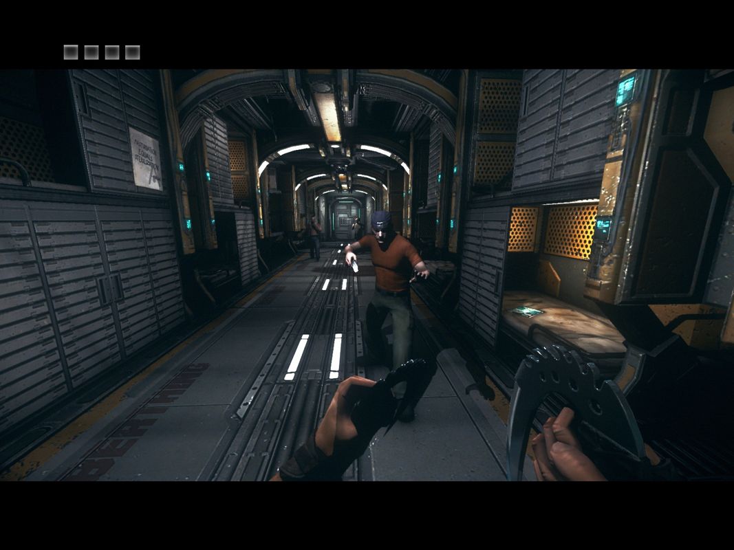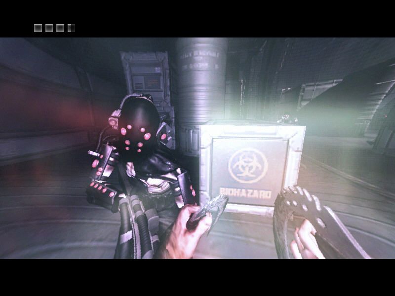 xr_softstencil 1to enable Soft Shadows, then enterxr_shadowmapmode 0to replace the low resolution shadow maps with stencil shadows (if you enter onlyxr_shadowmapmode 0, translucent textures lose their shadows but in combination withxr_softstencil 1they return with higher resolution). This tweak makes sense for the Assault on Dark Athena campaign only as the original Escape from Butcher Bay campaign doesn't seem to use any shadow maps. You need to enter it on every launch because the console settings are not saved. Please note that enabling this settings may result in worse performance, so if you have performance issues - restart the game to revert the changes - How to tweak different visual effects. If you don't like "Green color filter/Reduced Color" shading - go to