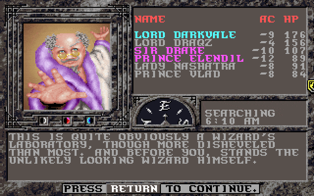 A Wise Old Man: That seems silly, given that 1991's Pools of Darkness had just as many pretty visuals, and Treasures of the Savage Frontier (which used the same engine as Pools of Darkness -- and even supported HIGH level characters from that game, even if the game enforced level limits). The problem, rather, was that they scrapped the old (written in Pascal) and stable codebase used in every other PC Gold Box except Unlimited Adventures and rewrote it in C or C++ for unimaginable reasons...