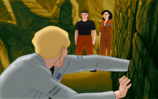 The game therefore suffered the same fate as Sierra’s outstanding RAMA years later: a difficult game that appeals only to a limited audience, namely fans of hard sci-fi. If you belong to the game’s intended audience, though, you’ll likely enjoy the game despite a somewhat cliché plot. The involvement of celebrities such as Orson Scott Card (dialogue script), Steven Spielberg (original idea), and Sean Clark (director), should make The Dig much more original than it is. Not that it is without merit—the opening scenes are quite breathtaking, with excellent graphics and grand Wagnerian-style musical score: an Asteroid Attila, which suddenly appeared in orbit around the Earth, is threatening the world population with unavoidable collision in the near future. Your alter ego is Commander Boston Low, who together with geologist Ludger Brink, and journalist Maggie Robbins, form NASA's team for a mission to detonate Attila, blow it off its deadly path and save the world. Once on the asteroid, the team inadvertently triggers controls that transform the rock into a crystal-like spaceship, which immediately took the trapped human team to an abandoned planet on the other side of the galaxy. Being safely transported to an unknown alien world, but unable to stay together in the ever-changing fantastic world, your team breaks up. Because Maggie seeks independence and leaves, and Brink dies stupidly, you are soon on your own, struggling to explore and understand the new, mind-twisting surroundings.