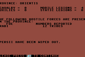 1983, the year The Fall of Rome was released on Commodore 64, as well as Atari 8-bit, BBC Micro and ZX Spectrum. Published by Argus Specialist Publications Limited, this strategy game is available for free on this page.