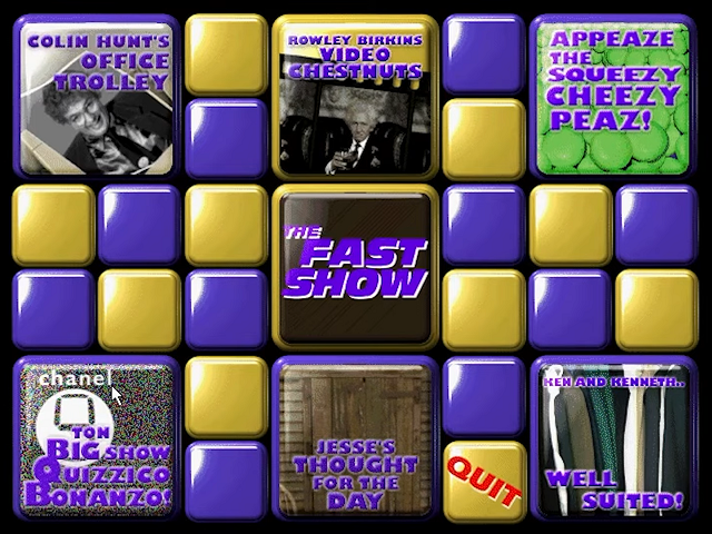 In 1999, BBC Worldwide Ltd. publishes The Fast Show Comedy Pack on Windows. This action and puzzle game is now abandonware and is set in an arcade, game show / trivia / quiz, real-time, video backdrop, licensed title, tile matching puzzle, comedy, contemporary and europe themes.