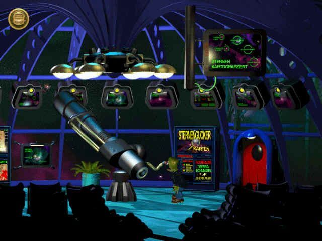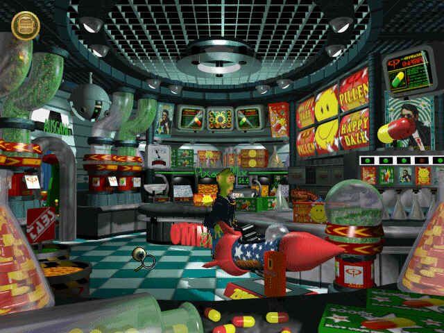 In a stern, alien society reminiscent of Normality, help Feeble, hapless citizen as he inadvertently violates one directive after another and stumbles onto a web of espionage. Tedious dialogues (which you must listen to very carefully) and some pixel-hunting mar this fun game. If you're looking for a challenging game that will seem to take forever to solve, this is your game.