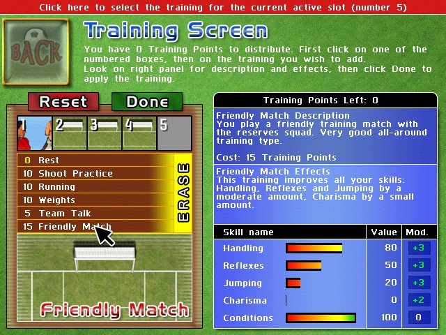 The game features the Training Screen, where you can train yourself to increase your skills and your chances to do well in the next match. Then there's the Statistics Screen, where you can take a look at every possible stats you want! Lastly, the Contract/Coach Talk Screen will let you choose your attitude towards the team, if you want to stay there or move, and also talk to your coach to convince him to make you play the next match (in case he doesn't think that way!).