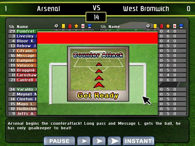 The match itself show stats for each player of both teams, like goals, injuries, substitutions, etc. The commentary describe what's going on: when the opponent striker tries to score, you have 3 options: Arcade Save in which you must intercept the ball using the mouse, Strategy Save in which you choose between three options, and Instant Save that, as the name suggests, is calculated instantly.