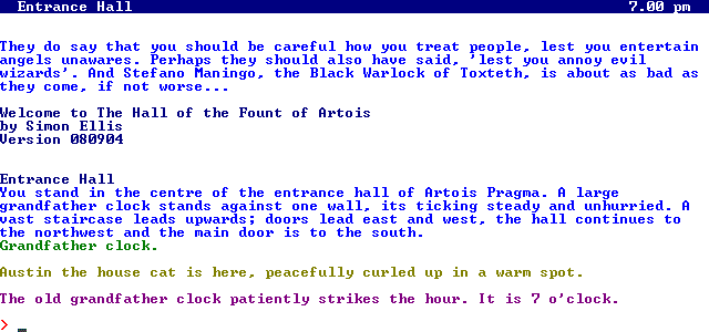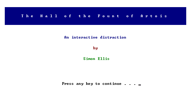 The Hall of the Fount of Artois is a video game published in 2008 on Windows. It's an adventure game, set in an interactive fiction theme.