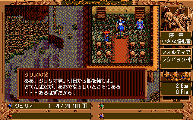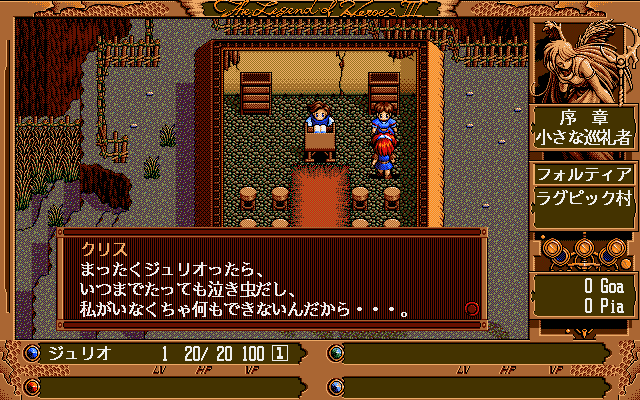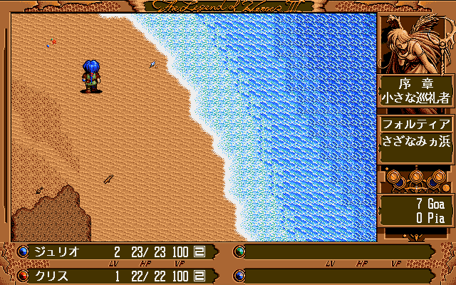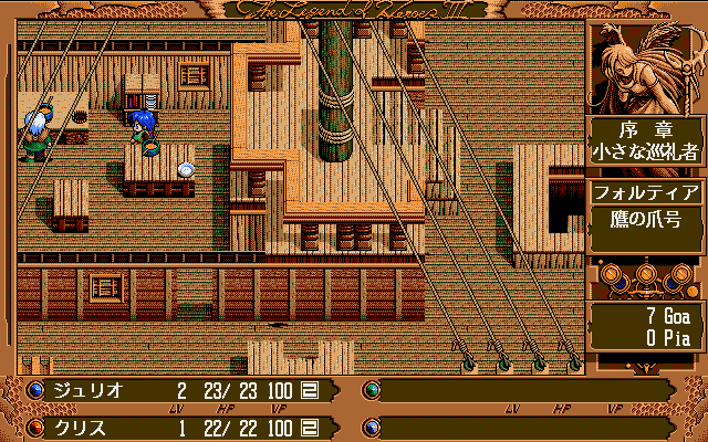 In 1999, Nihon Falcom Corp. publishes The Legend of Heroes III: Shiroki Majo on Windows. Also published on PC-98 and SEGA Saturn, this role-playing (rpg) game is abandonware and is set in an anime / manga and fantasy themes.