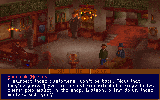 A personal comment on this one here - there was time when this game was like a benchmark of what is possible in adventure games. The game was running as a demo of graphics capabilities of PCs (rolling intro) in computer stores. I remember seeing this still as a happy Amiga user. The result was that I slowly started becoming less happy, seeing games such as this one. And the inevitable happened sometime later - as a fresh owner of my first PC (a 486SX/33, with an VLB SVGA and SB16), I remember this game as clearly one of the best adventure games from that period (the first half of 1990s). Of course, Lucasfilm games were cool, like some of the games from Sierra - but a detective story set in a beloved realm of Conan-Doyle classic novels, served in a technically impressive way (for the time when it appeared) - that was really something. For me, it was superior to games done by Sierra, on par with really the best ones like "Indiana Jones and the Fate of Atlantis".