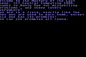 If you haven't played The Mystery of the Lost Sheep or want to try this adventure video game, download it now for free! Published in 1986 by Central Computing, The Mystery of the Lost Sheep was an above-average interactive fiction title in its time.