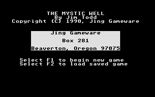 In 1992, Jing Gameware publishes The Mystic Well on DOS. Also published on Atari ST, this role-playing (rpg) game is abandonware and is set in a fantasy and real-time themes.