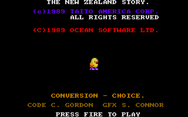The New Zealand Story is a video game published in 1990 on Genesis by Taito Corporation. It's an action game, set in an arcade, fantasy, platform and oceania themes, and was also released on Amiga, Amstrad CPC, Arcade, Atari ST, Commodore 64, FM Towns, SEGA Master System, Sharp X68000 and TurboGrafx-16.