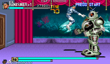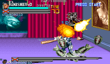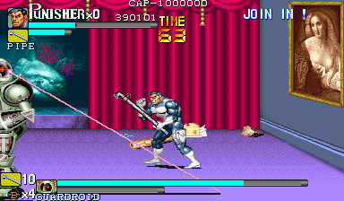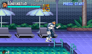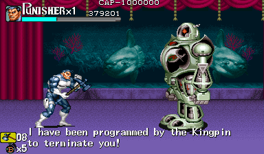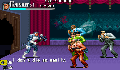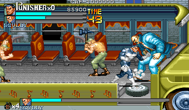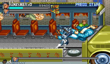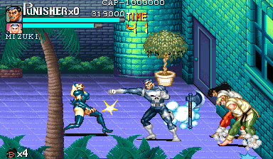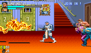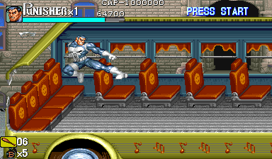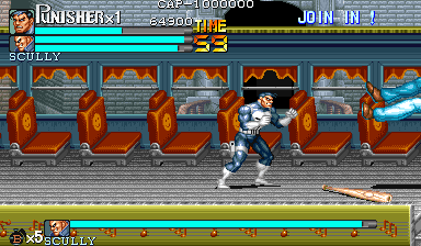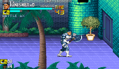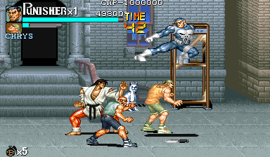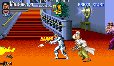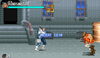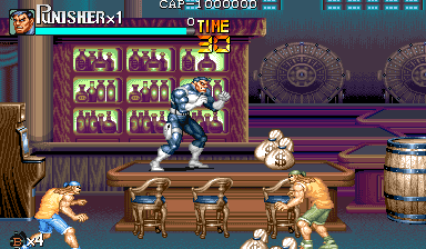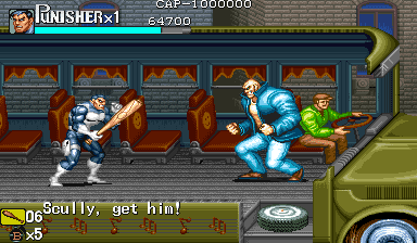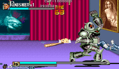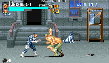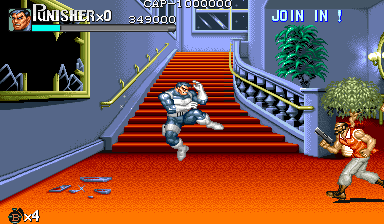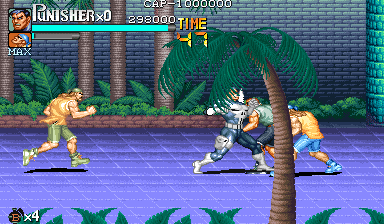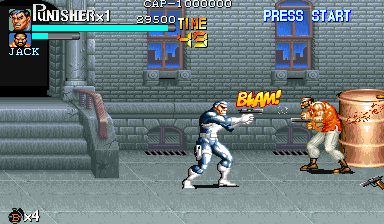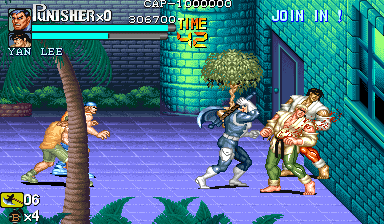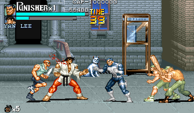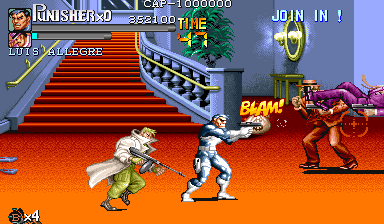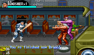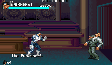 Here is the video game “The Punisher”! Released in 1994 on Genesis, it's still available and playable with some tinkering. It's an action game, set in a licensed title and beat 'em up / brawler themes and it was released on Arcade as well.