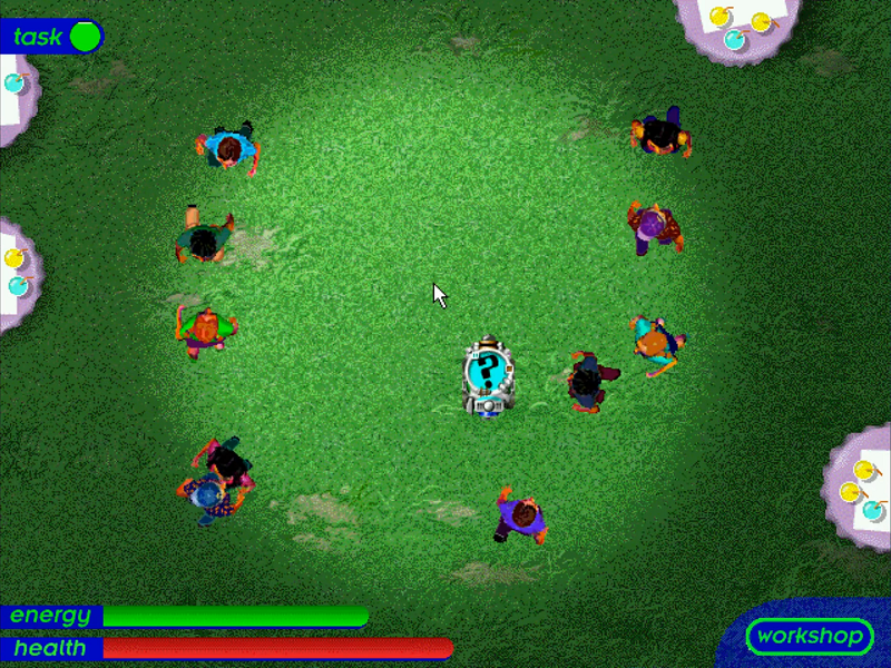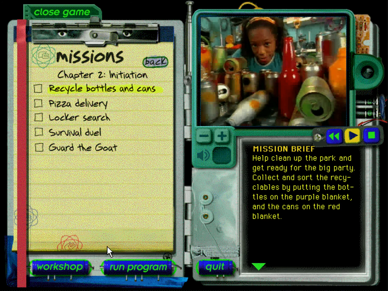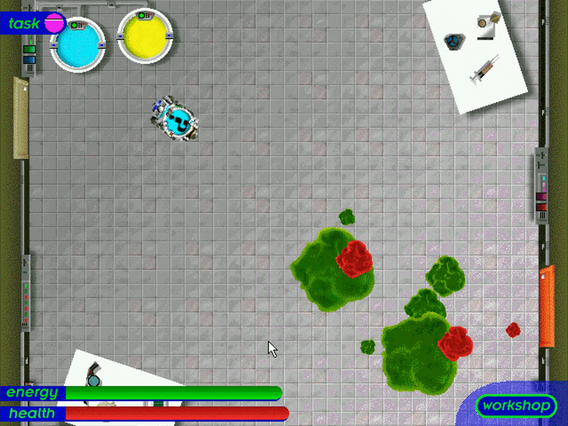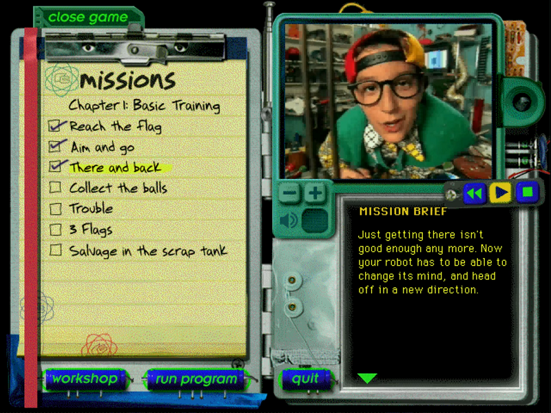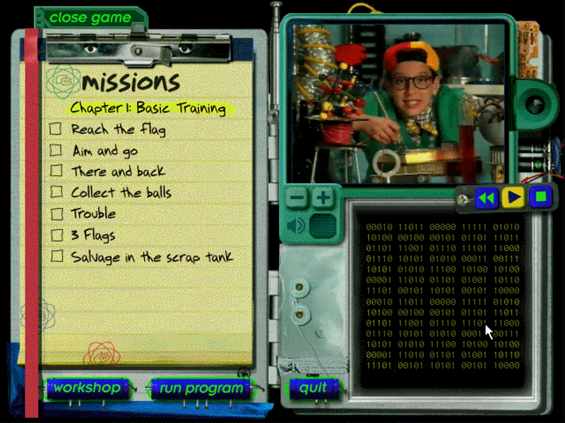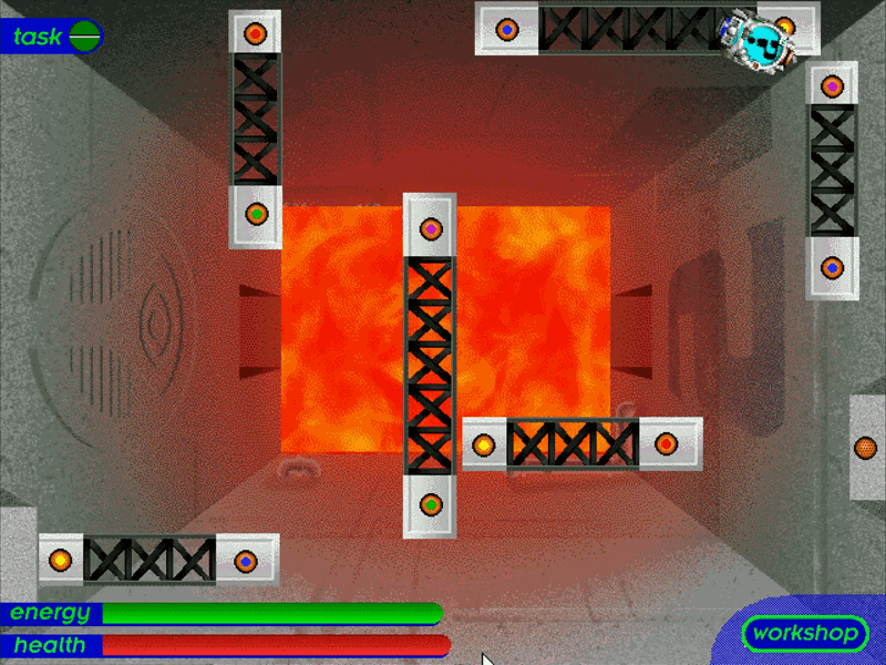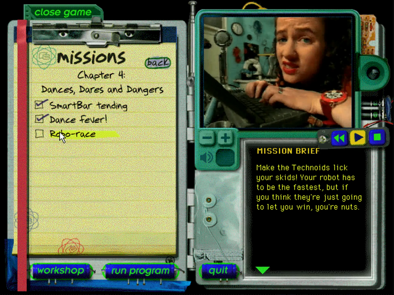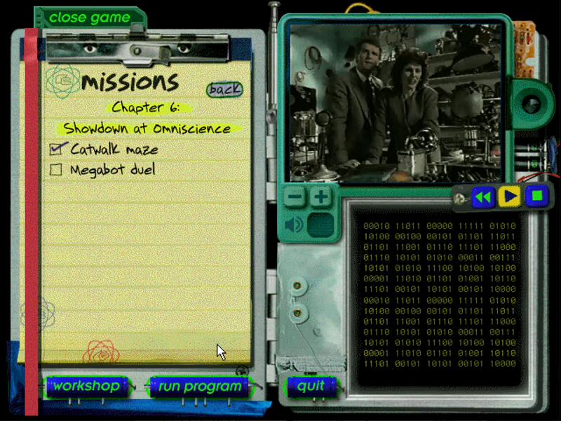 Here is the video game “The Robot Club”! Released in 1997 on Windows, it's still available and playable with some tinkering. It's a puzzle game, set in a real-time, sci-fi / futuristic and full motion video themes.