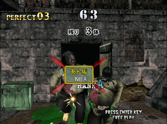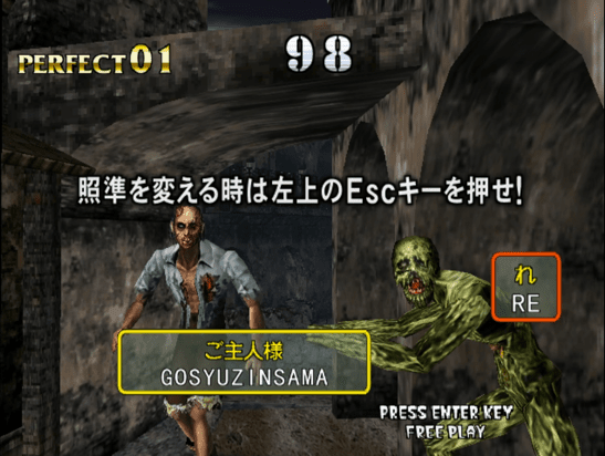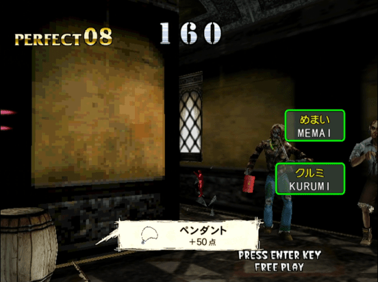 The difference here is that it while it was embarrassingly bad in House Of The Dead, it works to create a comical B-movie atmosphere that makes people crack up while delivering the big sleep to hordes of evil leg-draggers in Typing Of The Dead. A brilliant way the game subtly increases the appeal to people looking for a good dose of fun, the game has an excellent difficulty-adjustment system in place which makes sure players don't get overly frustrated. While going through a stage, the game will throw out long words and phrases with the first few zombies. If the player can type out the words quickly and with few errors, the zombies' floating marquees get longer and progressively more difficult the further a player goes without taking damage.