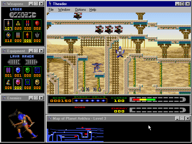 - The game works on modern systems but the installer of the game works only on 8-bit & 16-bit systems, so to install the game you will need tool like winevdm. Or you can use the custom installer by TheCollectionChamber, that installer is works on modern 32-bit & 64-bit systems. Also, the game can be launched directly from the disc by running Thexder.exe in compatibility mode with Windows 95. If the game works too fast, change the Performance settings in the game