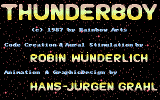 Share your gamer memories, help others to run the game or comment anything you'd like. If you have trouble to run Thunder Boy (Amiga), read the abandonware guide first!