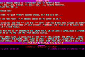 If you haven't played Tommy's Energy Fence or want to try this puzzle video game, download it now for free! Published in 1986, Tommy's Energy Fence was an above-average sci-fi / futuristic title in its time.