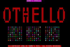1986, the year Tommy's Othello was released on DOS. Made and self published by Tommy's Toys, this strategy game is available for free on this page.