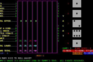 Tommy's Yahtzee is a video game published in 1986 on DOS. It's a strategy game, set in a board / party game theme.