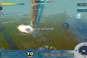 Here is the video game “Tornado Jockey”! Released in 2005 on Windows, it's still available and playable with some tinkering. It's an action game.