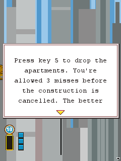Here is the video game “Tower Bloxx”! Released in 2009 on BlackBerry, it's still available and playable with some tinkering. It's an action and puzzle game, set in a city building / construction simulation theme and it was released on J2ME as well.