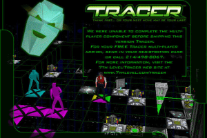 A patch has been released by 7th Level which adds multi-player capabilities using DirectPlay which means that Internet, IPX, TCP/IP, modem, serial link and any other supported network protocol should be possible, supporting up to eight players. I haven't had the opportunity to test this but I feel I should point out that the patch caused my copy of Tracer to become less stable than it was before application of the patch.