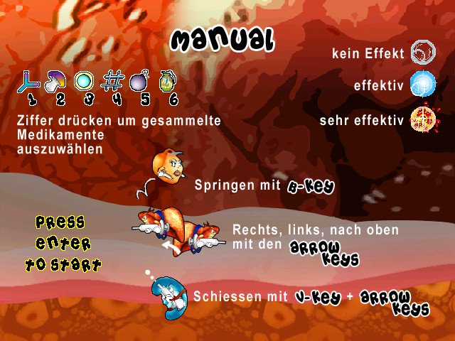 The player assumes the role of a newly transplanted organ and has to fight off the new hosts hyperactive immune system. The game is a jump'n'shoot vaguely resembling action games like Contra by Konami.