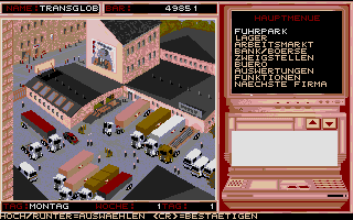 Played the game in its day. This download contains both the graphical interface version and the 'mono' version, which is a text based version. My friend and I spent an entire summer in hot-seat games (literally, because it was a hot summer) and with the text-only version, to cut-down on the long loading times. We'd fantasize about driving those big rigs ourselves, all across Europe. If I recall, picking up cars in Moscow and bringing them back was the most profitable gambit. Anyway, I have fond memories of the game, rekindled recently by playing Euro Truck Simulator 2. I guess you'd have to have been there, in the early nineties, to appreciate this game. Everyone else take a look at ETS2 instead. Happy gaming!