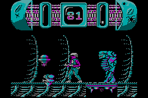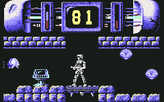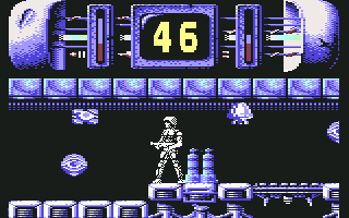 The very cliche save-the-world-from-robot-mutiny premise notwithstanding, Trantor features some challenging end-level bosses with creative arrays of weapons. Unfortunately, few gamers would be motivated enough to get to that point, because of several idiosyncracies. First of all, you (the stormtrooper) is equipped with a measly flamethrower that has a very short shooting range. Furthermore, you can only jump a tiny amount, and you can't shoot up or diagonally. This makes it all but impossible to avoid damage from dozens of flying enemies that hover above you at all times, not to mention artillery on the ground. This very limited movement and attack options reduce the game to a very tedious exercise of keep-the-fire-button-pressed-while-jumping.