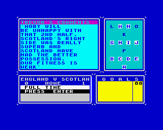 1990, the year Trevor Brooking's World Cup Glory was released on Commodore 64, as well as Amstrad CPC and ZX Spectrum. Published by Challenge Software, this strategy and sports game is available for free on this page.