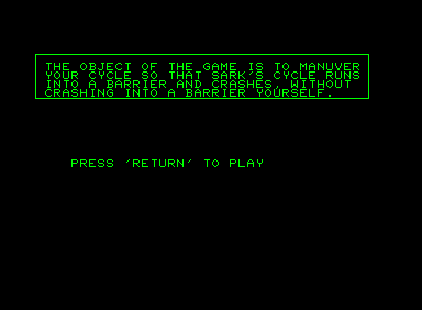 Tron: Light Cycle Game is a video game published in 1982 on Commodore PET/CBM. It's an action game, set in an arcade and fangame themes.