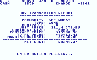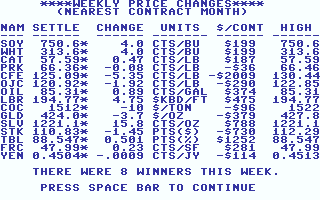 The game is turn-based, with each turn representing one week. During each turn, you can take a position on a futures contract of your choice (either long (i.e. buy) or short (i.e. sell) position). You can also look at graphs that show futures prices of each commodity over time, liquidate your position (hopefully for a profit, of course), read the news (all of which affect futures prices one way or the other), and read short descriptions of each commodity. The game is quite simple, but reasonably realistic.