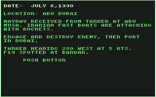 Taking place in a hypothetical modern day, the games offers only 4 missions to choose from, ranging in difficulty from easy to difficult: convoy attack, platform attack, submarine attack, and battle fleet war. The only difference between them is in the number of enemies, and the type of target you must destroy. In a novel twist to the genre, you can choose battle locale after choosing a mission. There are four areas you can choose, including Falkland Island, Tanazu, You can also choose whether to engage in a nighttime or daytime battle.