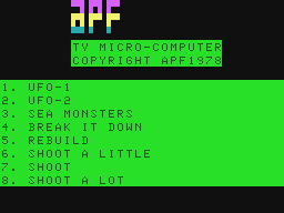 If you haven't played UFO/Sea Monsters/Break It Down/Rebuild/Shoot (with variations) or want to try this action video game, download it now for free! Published in 1978 by APF Electronics, Inc., UFO/Sea Monsters/Break It Down/Rebuild/Shoot (with variations) was an above-average naval title in its time.